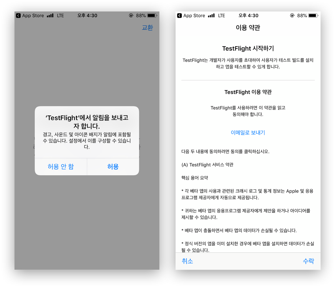 이상 TestFlight 시험 사용자 등록 방법입니다