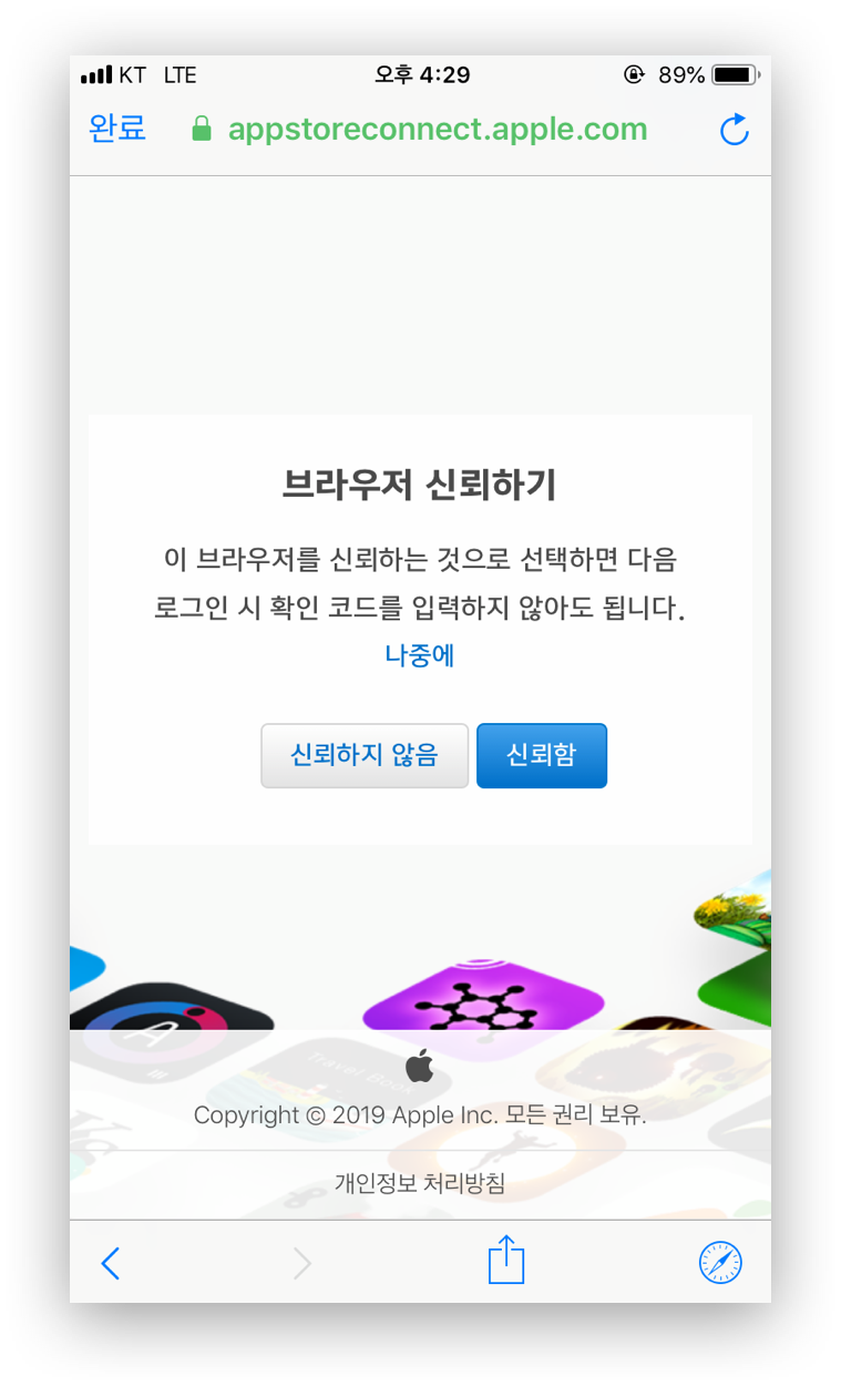 그러면 App Store Connect 페이지로 넘어가게 됩니다