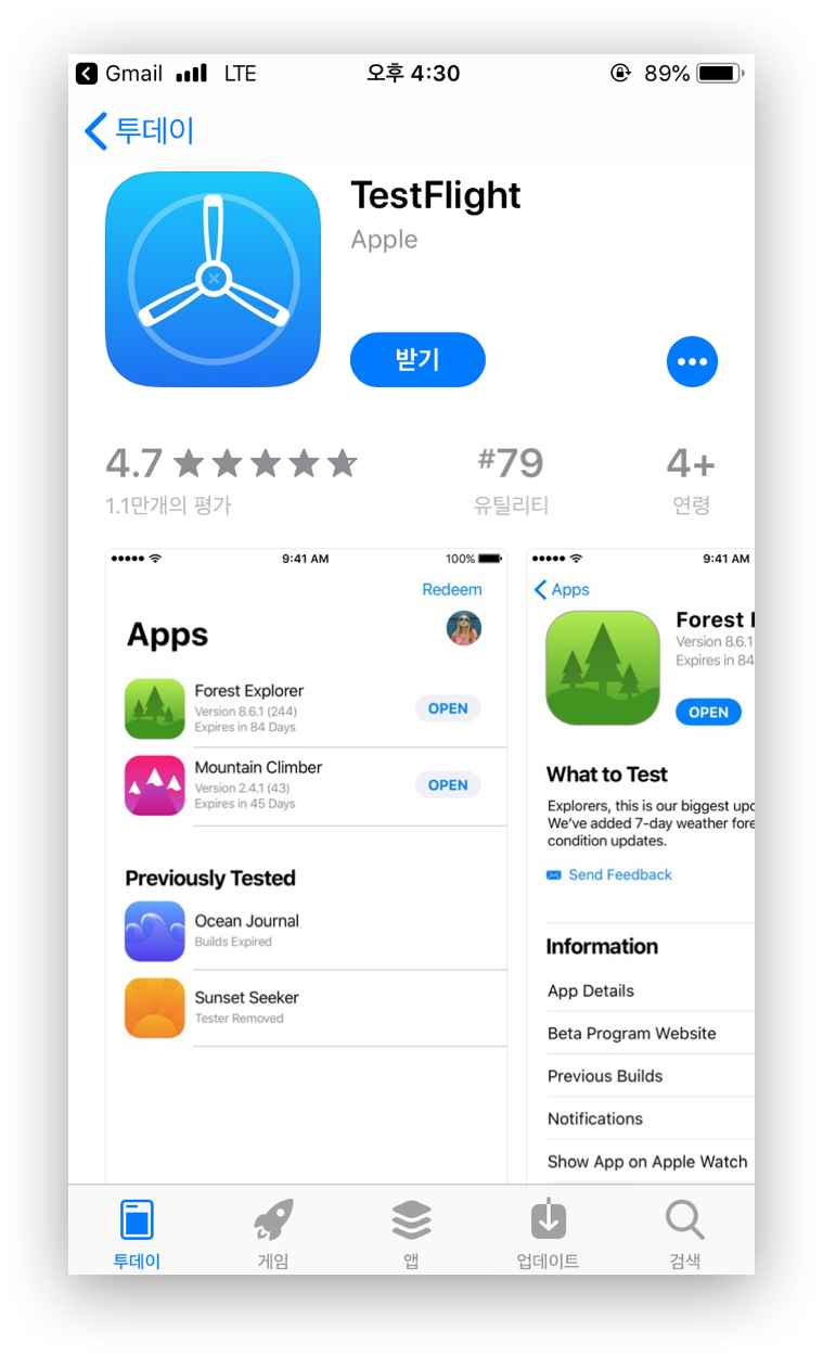 그 순서 중에 TestFlight 어플리케이션이 필요합니다