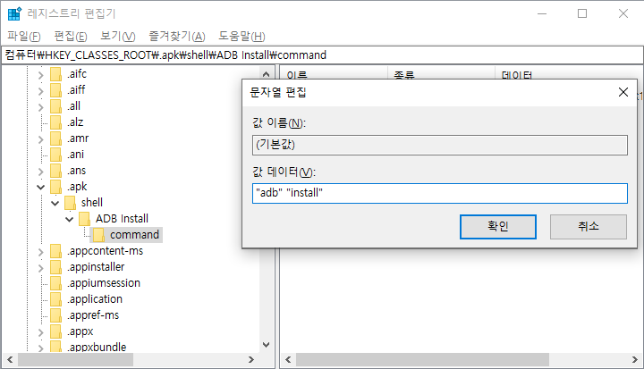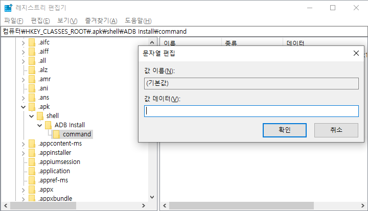 여기 데이터에 "adb" "install" 를 입력한다.