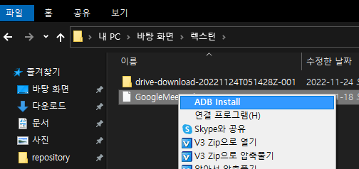 마우스 오른쪽 클릭해서 메뉴를 추가하여 adb install 명령어를 추가하려 한다