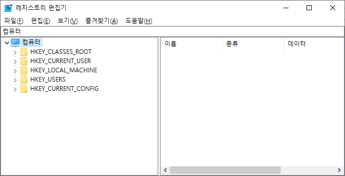 그러면 이런 레지스트리 편집기가 나오는데