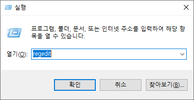 그 후 "regedit" 을 입력하고 확인을 누른다